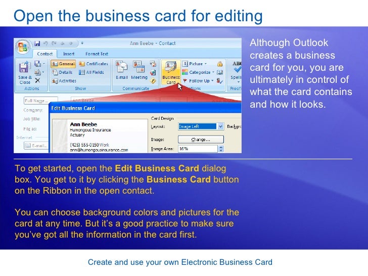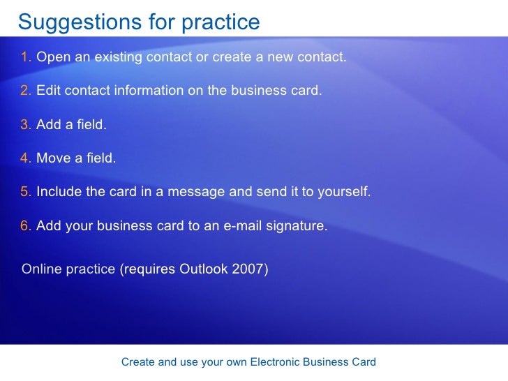Outlook 2007 Create And Use Your Own Electronic Business Card